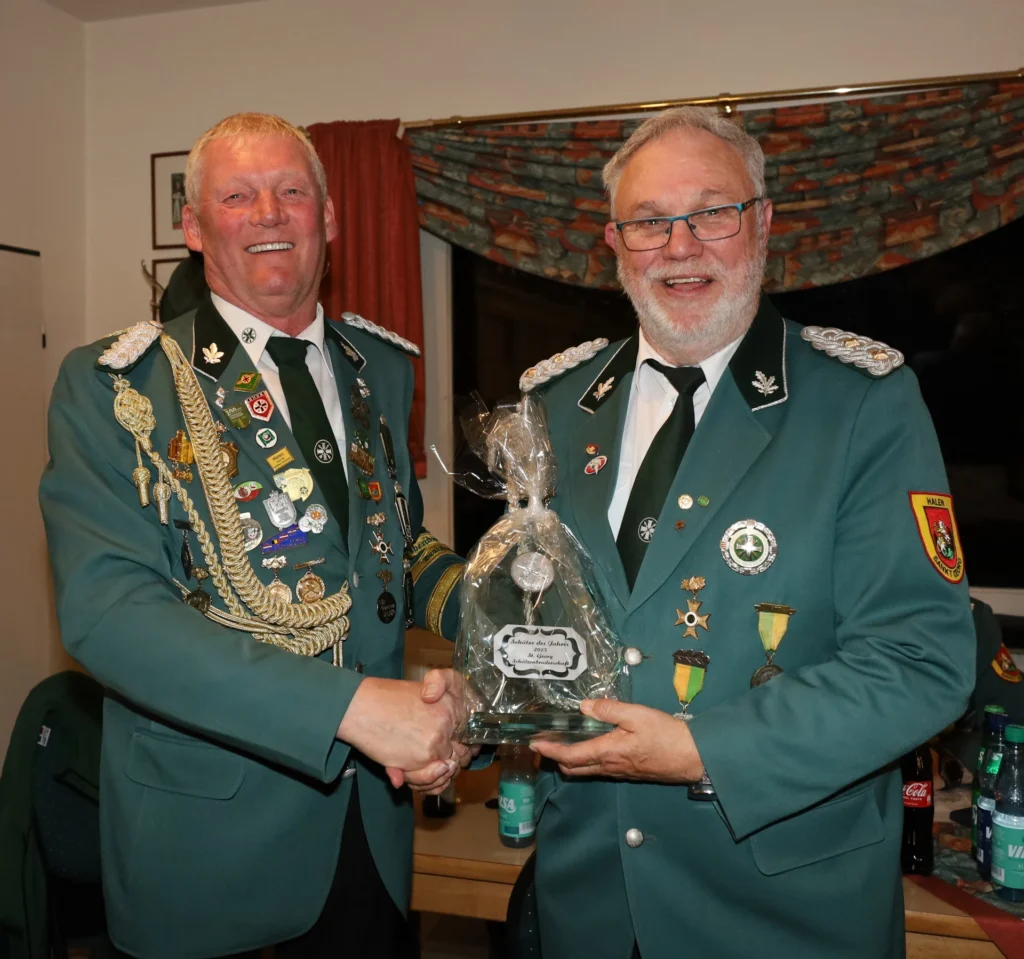 Ein Höhepunkt jeder Generalversammlung ist die Bekanntgabe des „Schützen des Jahres“. Diesen Ehrentitel erhielt in diesem Jahr Heinz-Günter Dobelmann. In der Laudatio von Ludger Thien hieß es: „Die Auszeichnung zum Schützen des Jahres 2025 ist eine verdiente Anerkennung seines bisherigen Lebenswerks für das Schützenwesen“. Zur Begründung führte Thien unter anderem weiter aus: Heinz-Günter Dobelmann sei seit Gründung der Bruderschaft vor nunmehr fast 50 Jahren engagiertes Mitglied dieser Bruderschaft. Seit 1997 sei er Pressewart des Vereins. Er habe maßgeblich das Jubiläum zum 25-jährigen Bestehen der Bruderschaft mitorganisiert und federführend an der Erstellung der Vereinschronik mitgewirkt. Im Jahr 2003 sei er zum stellvertretenden Brudermeister gewählt worden und habe drei Jahre später das Amt des Brudermeisters übernommen und bis 2017 inne gehabt. Während seiner Amtszeit habe die Bruderschaft wichtig Projekte, wie die Erweiterung und Modernisierung des Schützenhauses und die Installation einer elektronischen Schießanlage, verwirklicht. Neben seinem Engagement für den Verein sei er von 2000 bis 2023 außerdem als Pressereferent für die Jung- und Altschützen des Landesbezirksverbandes tätig gewesen und habe dort auch maßgeblich an der Erstellung der Chronik zum 75-jährigen Jubiläum des Landesbezirksverbandes Oldenburger Münsterland-Hümmling mitgearbeitet. Nach wie vor sei Heinz-Günter Dobelmann bei den Veranstaltungen des Vereins und auch bei überregionalen Anlässen immer präsent und jederzeit ansprechbar und hilfsbereit. Sein unermüdlicher Einsatz mache ihn zu einem unverzichtbaren Mitgliede der Schützenfamilie und einem Vorbild für alle Schützen.